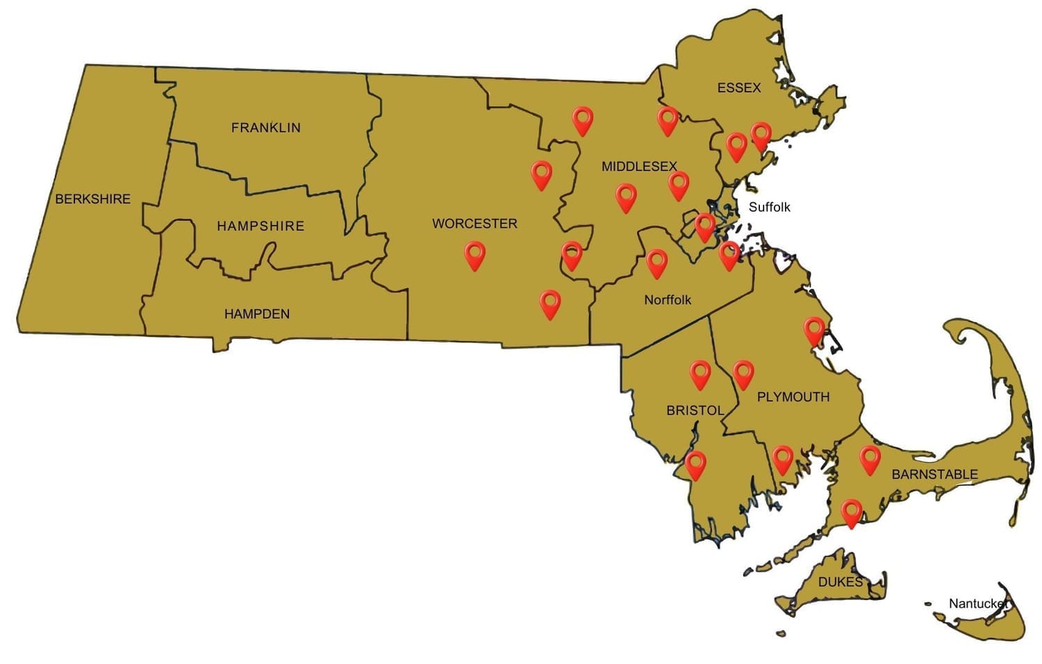 Waltham, Malden, Burlington, Natick, Framingham , Marlborough, Watertown
